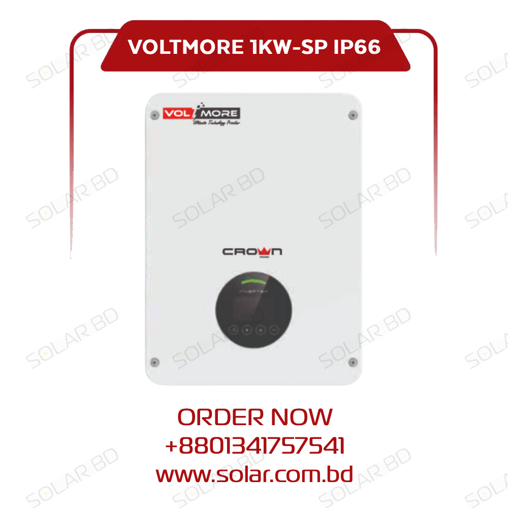 The Crown Micro VOLTMORE-VMGI-1KW-SP is a compact, reliable, and high-efficiency on-grid solar inverter designed for residential and small commercial PV installations. Featuring a wide MPPT range, IP66 weatherproof rating, and integrated protections, it ensures long-term durability and maximum energy harvest from your solar system.