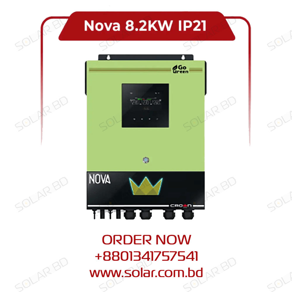 The CrownMicro NOVA-8.2KW is a high-performance solar inverter designed for modern residential and commercial solar systems. Featuring pure sine wave output, MPPT-based solar charging, and advanced monitoring options, it delivers reliable and efficient power conversion for sustainable energy solutions.