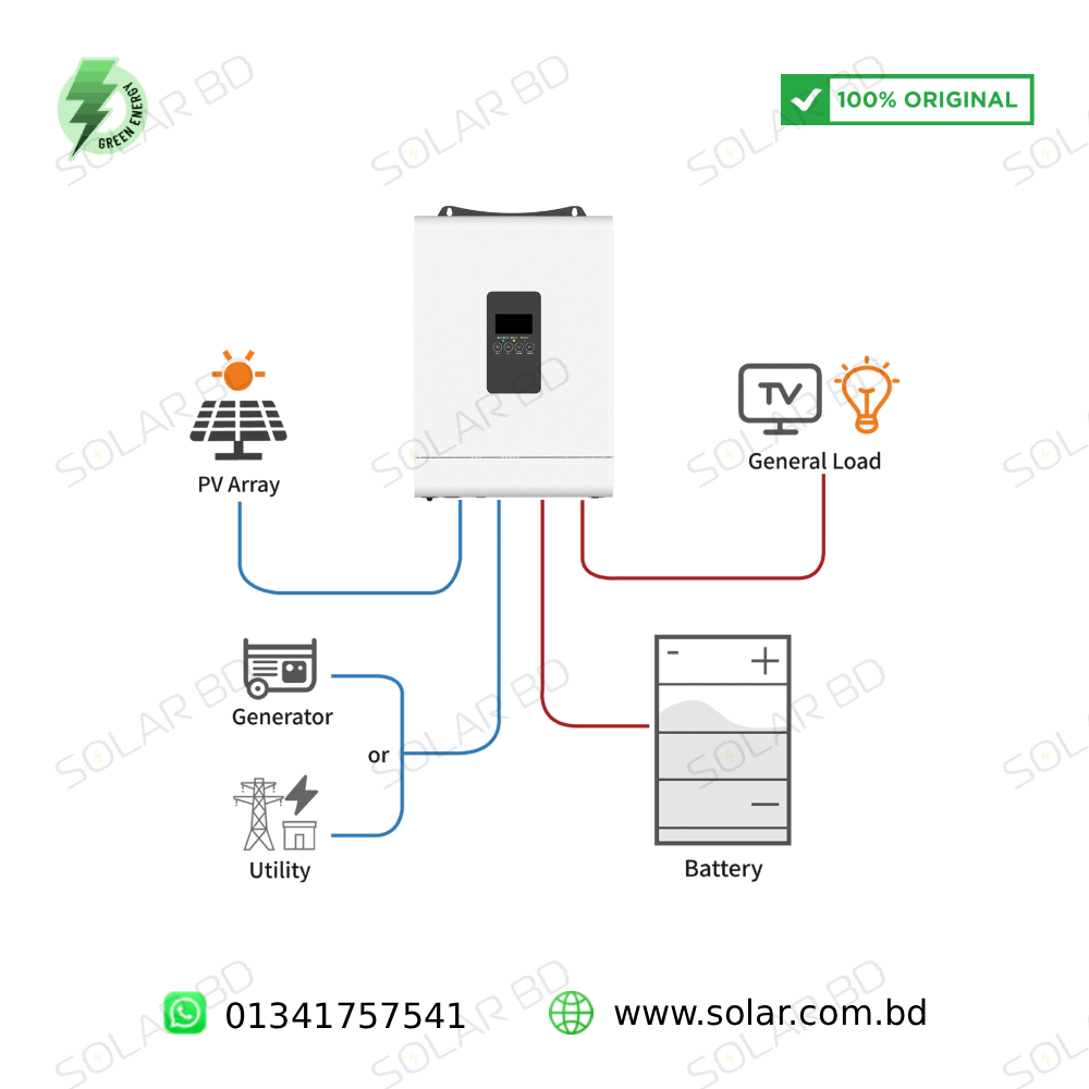 - Provides stable 5.5KW pure sine wave output for residential and commercial loads.